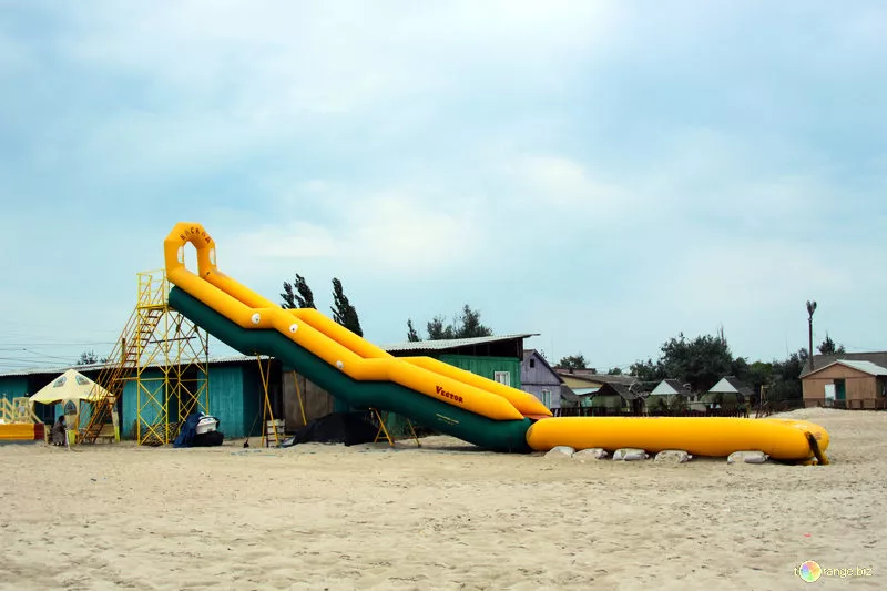 Мужчины спустили аттракцион на воду, чтобы проверить горку на наличие проколов. Но порывом ветра ее вместе с людьми унесло в море.