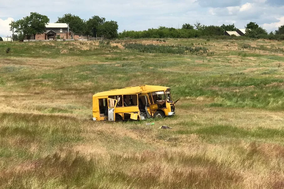 Водитель автобуса ПАЗ не уступил дорогу рейсовому автобусу, следующему по маршруту Донецк — Ростов, в результате чего произошло столкновение. Автобус ПАЗ оказался в кювете в 100 метрах от места столкновения.
