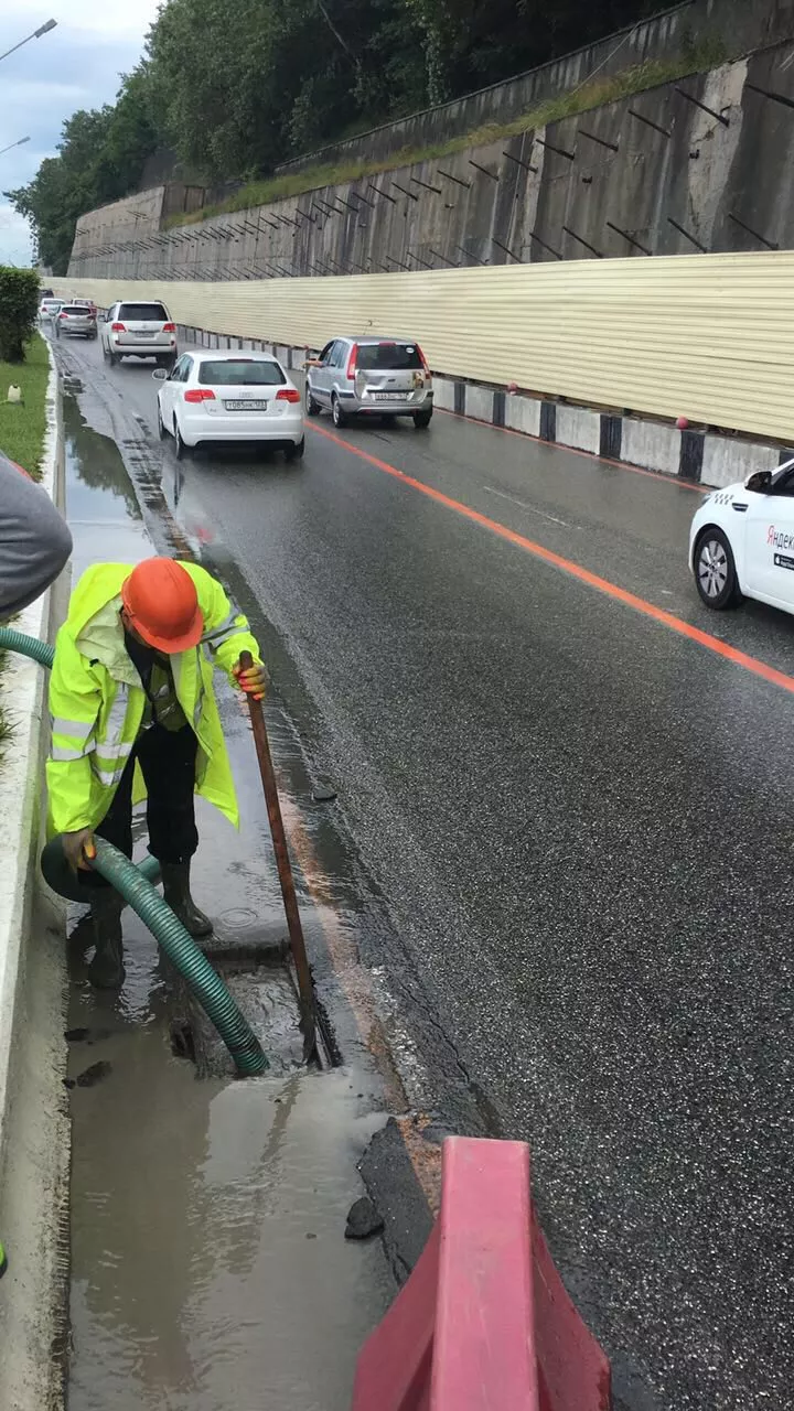 Утром 25 июня в Сочи после сильного ливня затопило федеральную трассу, сейчас последствия дождя ликвидировали