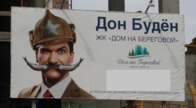 «Реклама содержала сведения о жилищном комплексе с рекламным слоганом "Дон Буден"», а также образ мужчины в буденовке и с двумя рыбками вместо усов. Образ Буденного особенно памятен и значим для жителей Ростовской области, и используемый в рекламе образ вызвал огромное возмущение у жителей Ростова, в связи с чем в ведомство поступили многочисленные обращения от граждан», — сообщает пресс-служба ростовского УФАС.