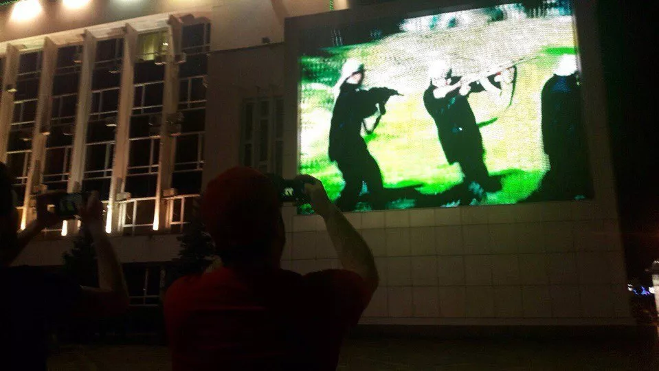 В социальных сетях появились сообщения, что в Краснодаре на экране на Театральной площади показывают ролики ИГИЛ. Однако те кадры, что попали в интернет, были частью социального ролика на тему антитеррора.