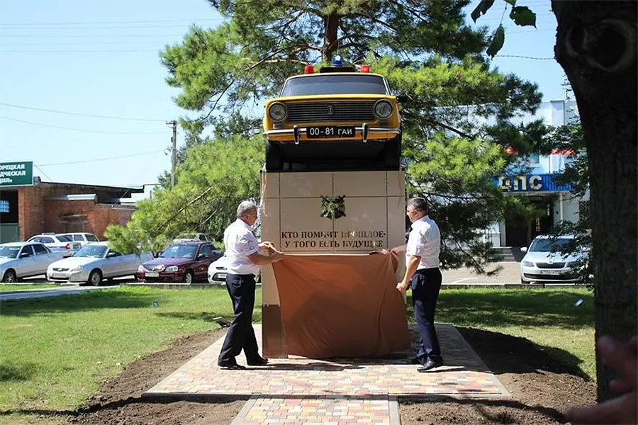 «Памятник в виде милицейского ретроавтомобиля, на котором несли службу нынешние ветераны — те, кто уже отслужил в милиции, с надписью «Кто помнит прошлое, у того есть будущее» символизирует преемственность поколений и работу дорожной полиции на посту», — сообщили в пресс-службе ГУ МВД по Краснодарскому краю.