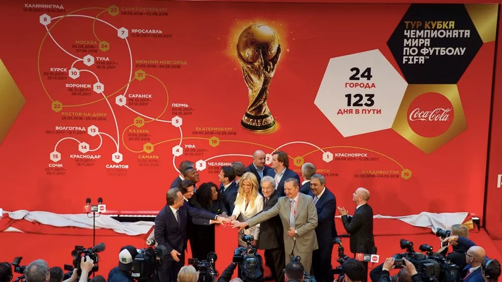 Тур кубка мира стартует в Москве в сентябре 2017 года. Трофей посетит 24 российских города: до декабря кубок объедет 15 городов, а с января по май 2018 года посетит более 50 стран мира на шести континентах. В мае трофей вернется в Россию, объедет девять городов и финиширует в Москве 14 июня. Общая протяженность маршрута составит 26 тыс. км, сообщается на сайте чемпионата мира.