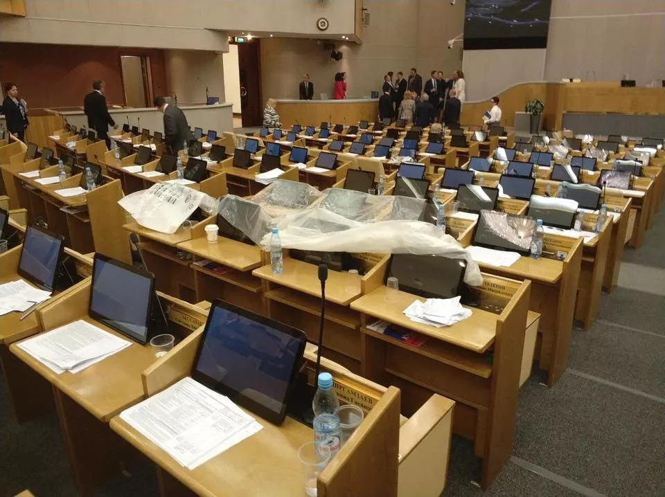 По информации «Интерфакса», течь произошла в центре зала пленарных заседаний над местами, которые занимают депутаты фракции «Единая Россия». Во время перерыва полиэтиленом накрыли мониторы.