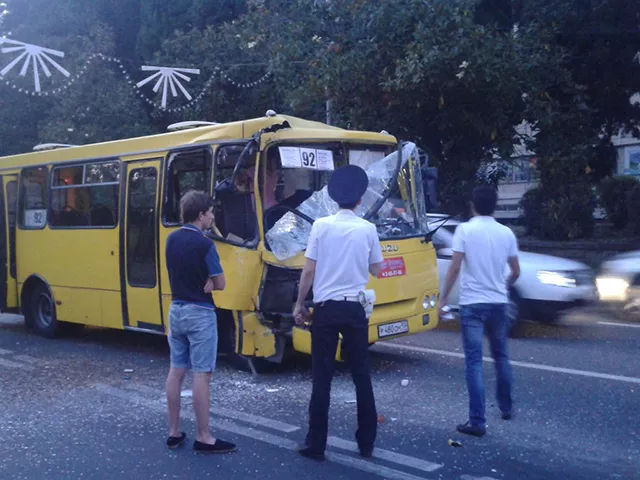 Два маршрутных автобуса, перевозивших пассажиров, столкнулись в центре Сочи