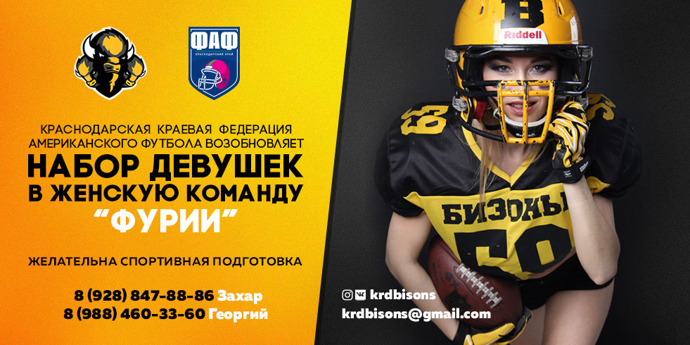 Команда по американскому футболу «Краснодарские бизоны» объявил о возобновлении набора в женскую команду «Фурии»