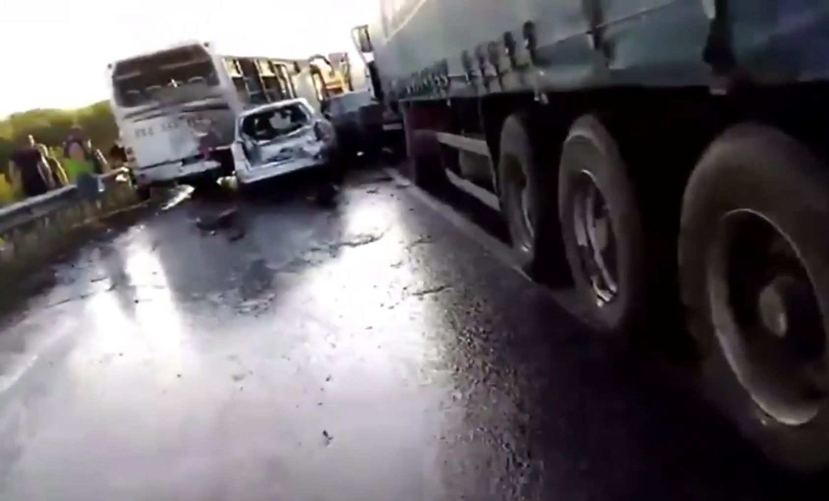 На Дону большегруз врезался в два автобуса и шесть легковых автомобилей, есть пострадавшие