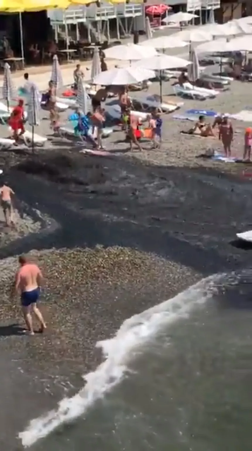 Утром «Макс Портал» опубликовал видео, на котором из-под земли на пляж выбивается мутный поток воды и утекает в море. Это произошло из-за аварии на магистральном водоводе диаметром 800 мм на улице Медовой. Впоследствие произошел смыв примесей грунта и земли со стен ливневого коллектора, что дало соответсвующий окрас потоку.