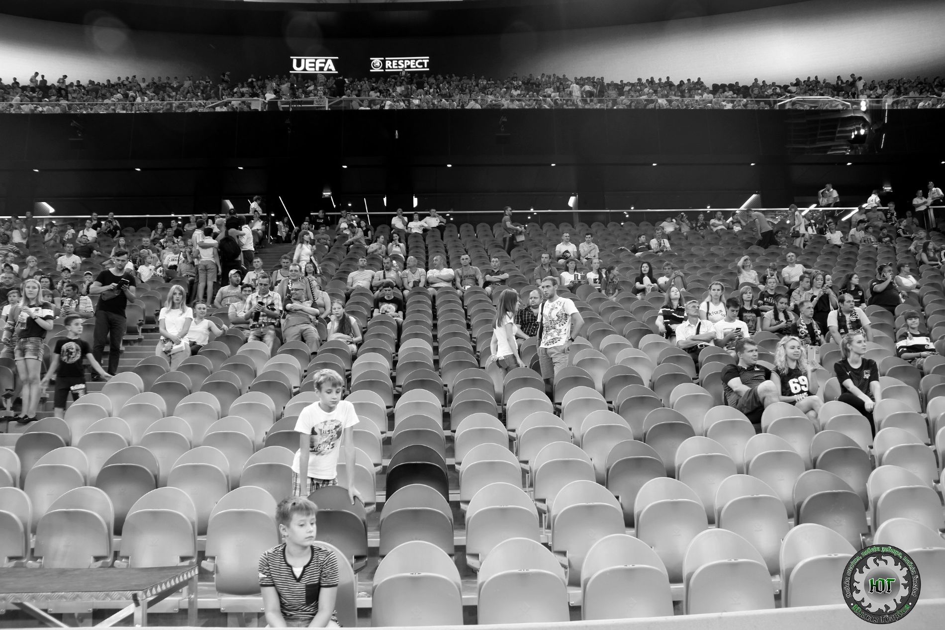 По версии фанатов, потасовка началась из-за того, что зрительница пожаловались на большой флаг, которым размахивал один из болельщиков. Зрители попытались вырывать флаг у парня, который им размахивал, несколько болельщиков попытались остановить конфликт, что спровоцировало еще большую потасовку. В нее вмешались стюарды, а затем «ворвались с кулаками» сотрудники ЧОП.