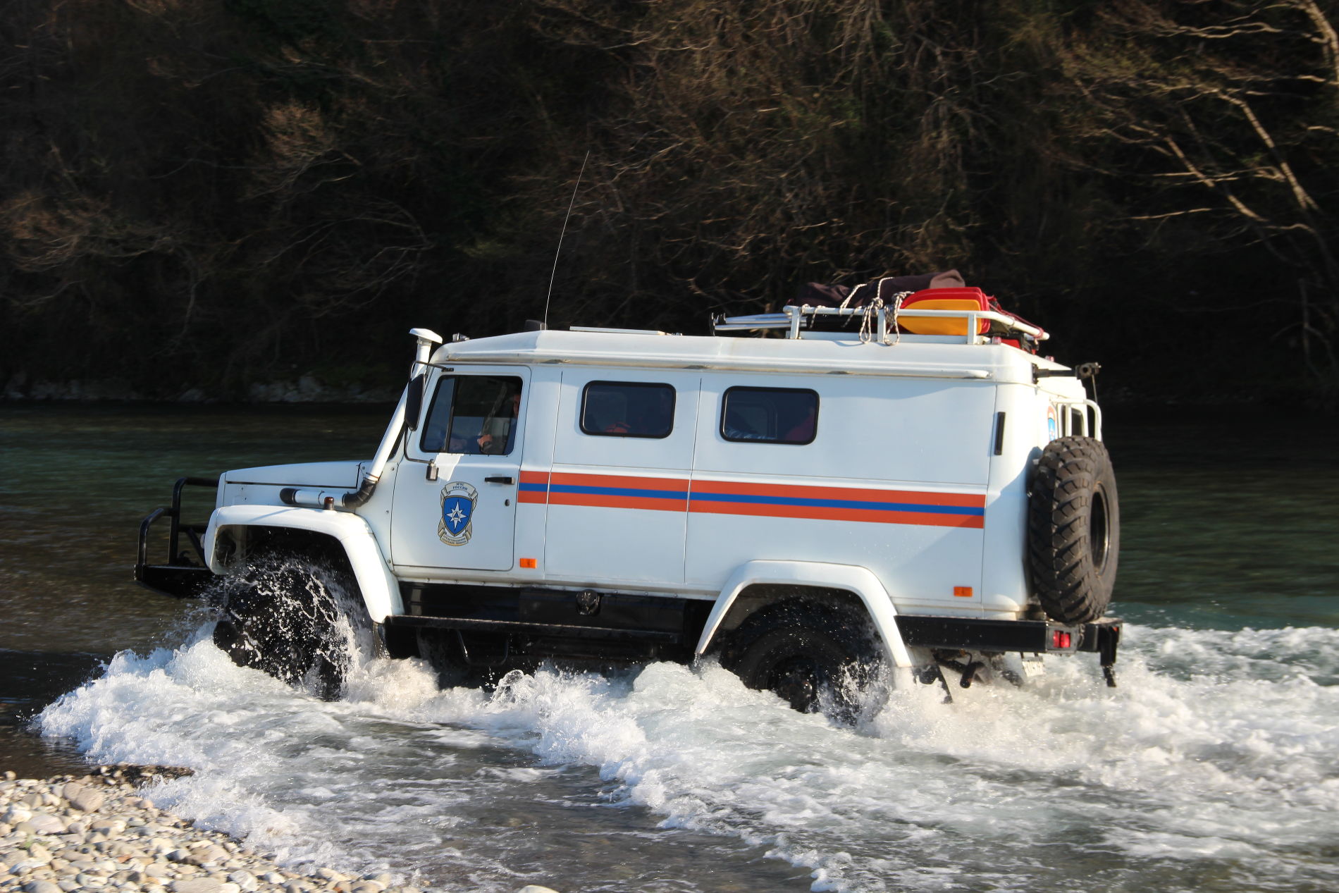 Спасатели рассказали, что уровень воды в реке поднимался очень быстро. В некоторых местах удавалось преодолеть ее вброд на автомобиле, несколько раз для эвакуации надо было натягивать навесную переправу.