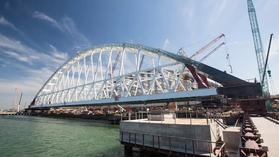 27 августа строители приступили к установке железнодорожной арки Крымского моста