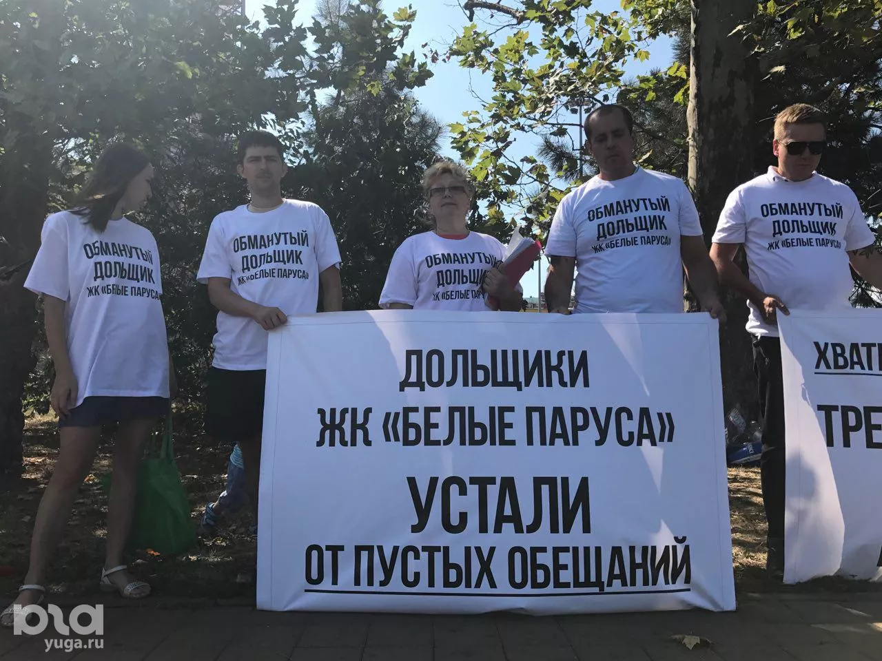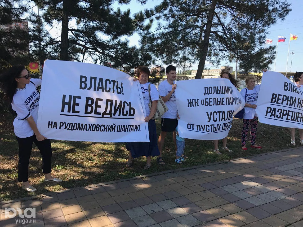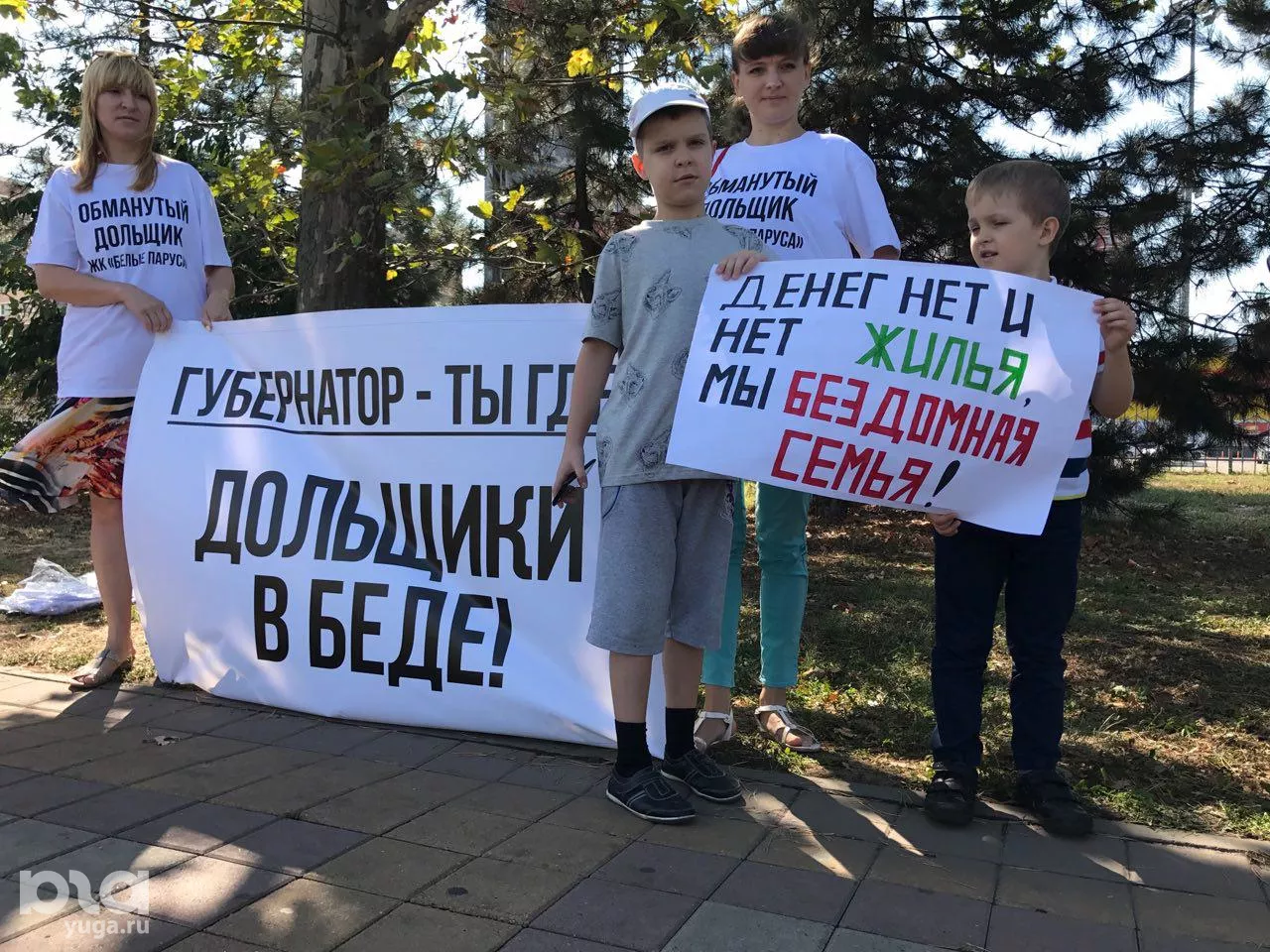 8 сентября в краснодарском микрорайоне Гидростроителей состоялся пикет дольщиков недостроенного ЖК «Белые Паруса»