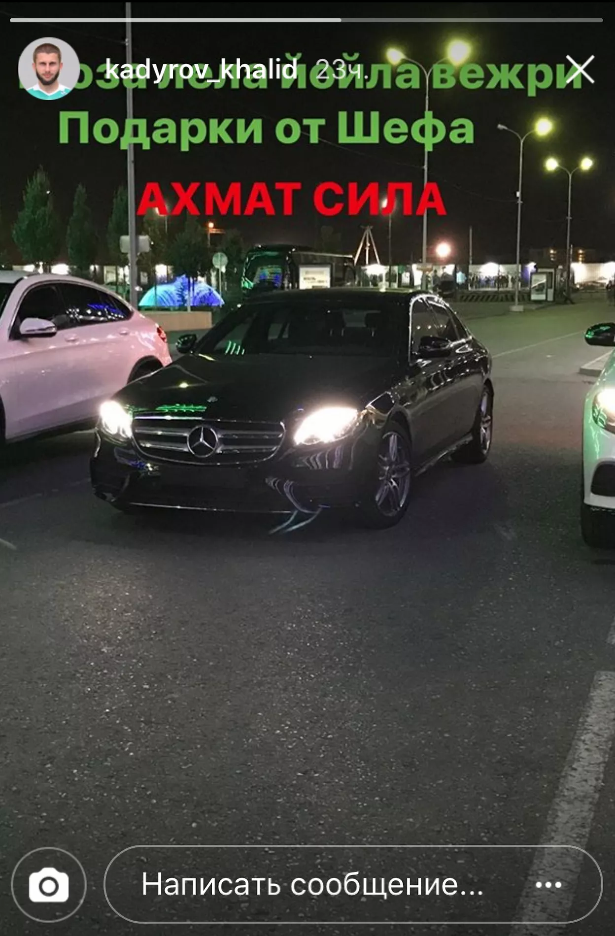 Накануне племянник главы Чечни Халид Кадыров, который также является воспитанником грозненского клуба и играет в «Ахмате», опубликовал в своем инстаграме фотографии с автомобилями и подписал: «Подарки от шефа».