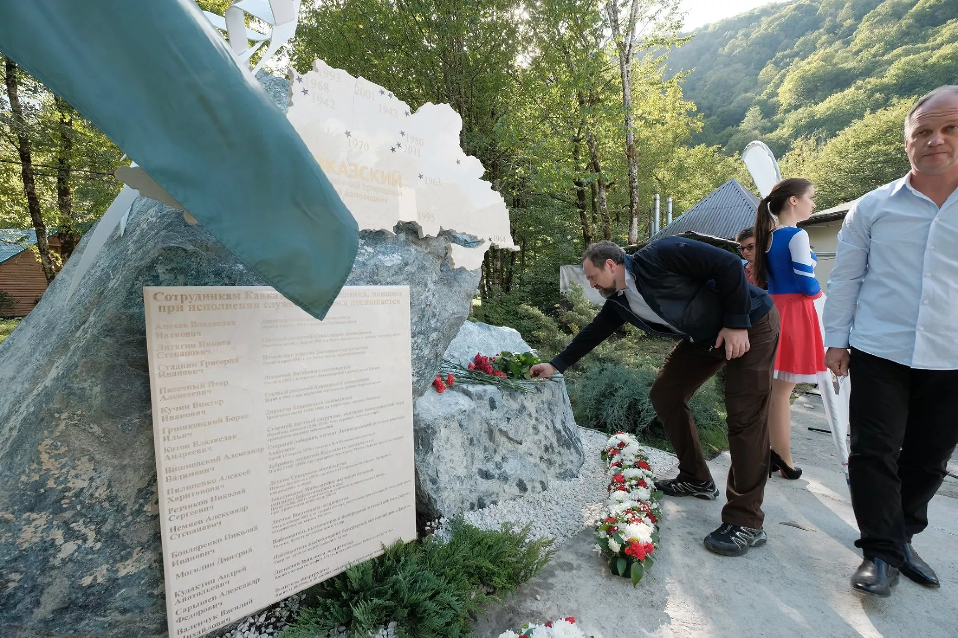 В экоцентре «Лаура» в поселке Красная Поляна 30 сентября прошла церемония открытия памятника сотрудникам Кавказского заповедника, погибшим при исполнении служебных обязанностей