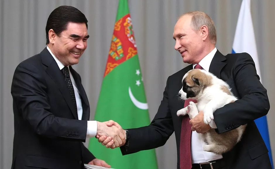 Глава Туркмении подарил президенту России щенка алабая по кличке Верный, добавив, что Путин очень много делает для экологии.