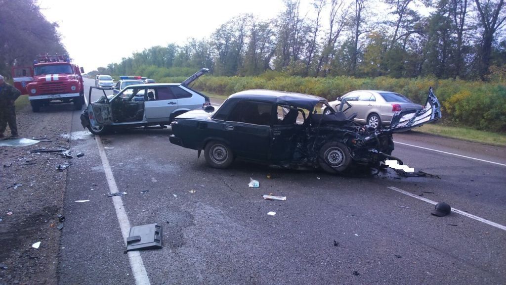 Авария произошла в 11:00 на трассе Краснодар — Ейск. По предварительным данным, 61-летний водитель ВАЗ-21074 выехал на встречу и касательно столкнулся с ГАЗ-2834. После этого ВАЗ врезался в ВАЗ-21093 и Audi, сообщает отдел пропаганды УГИБДД ГУ МВД РФ по Краснодарскому краю.