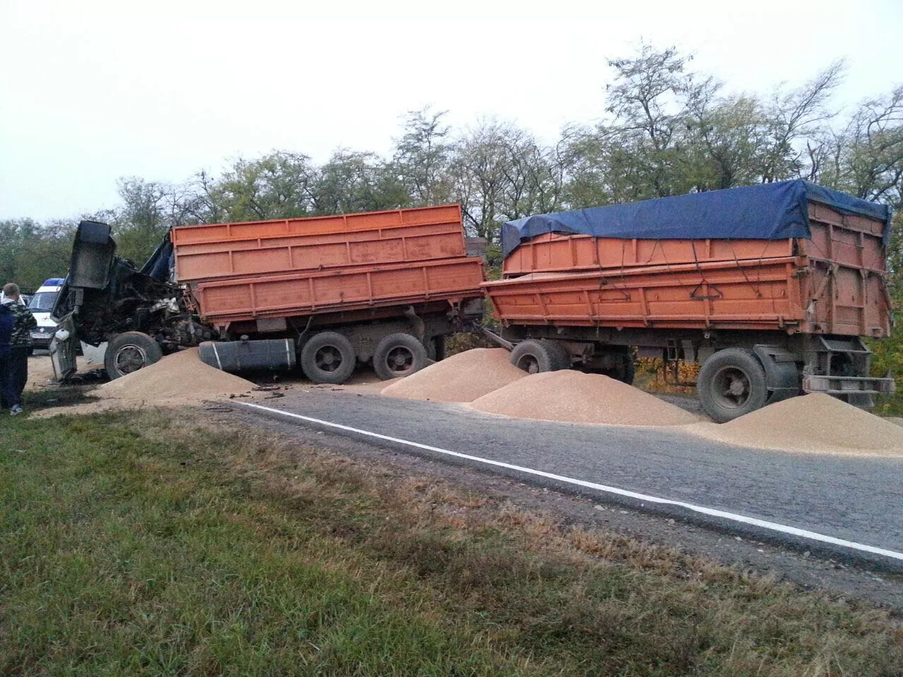 ДТП случилось в 5:40 на трассе Кавказская — Дмитриевская. По предварительным данным, два КамАЗа столкнулись лоб в лоб, сообщили порталу Юга.ру в пресс-службе ГУ МВД РФ по Краснодарскому краю.