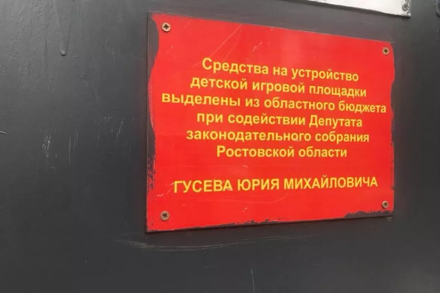 Недавно там появилась табличка, которая гласит, что средства на устройство площадки выделили из областного бюджета при содействии депутата Заксобрания Ростовской области Юрия Гусева.