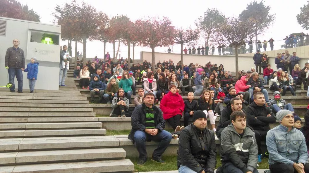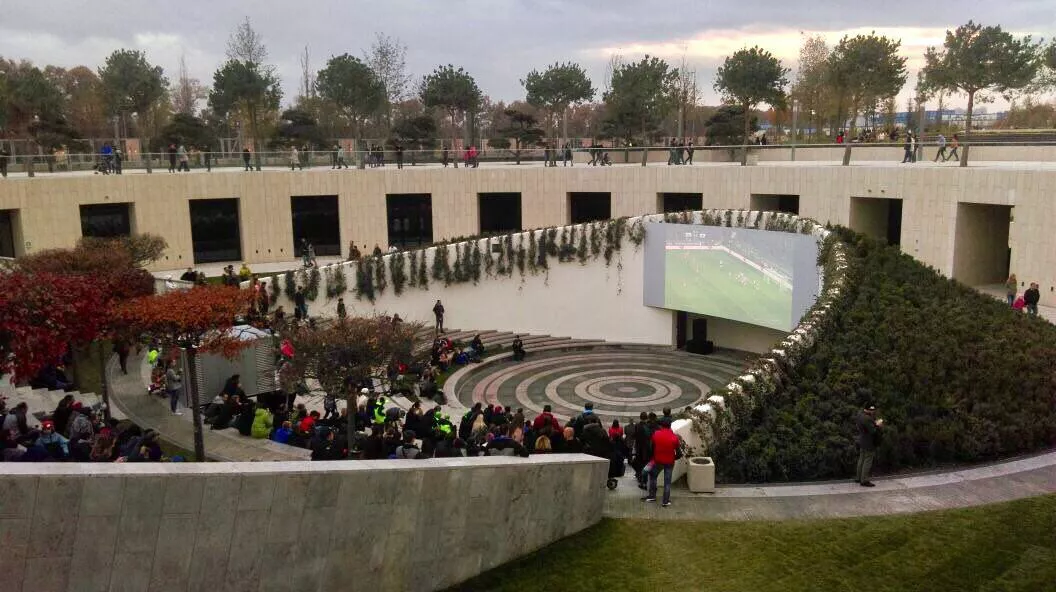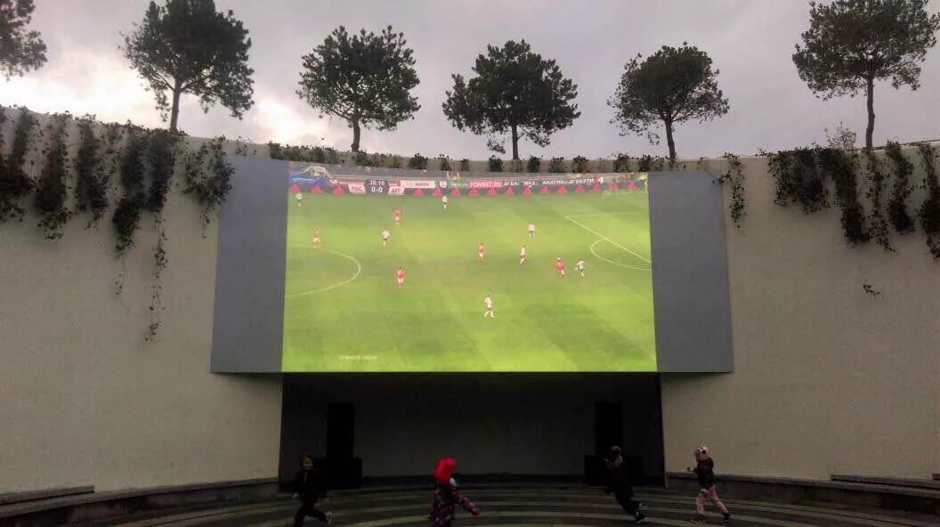 Трансляцию игры показывали в амфитеатре парка у стадиона ФК «Краснодар», который открылся в конце сентября. Матч собрал около 300 зрителей.