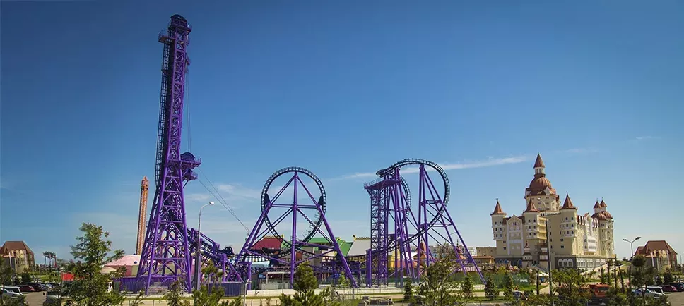 «Квантовый скачок» — экстремальная горка, длина трассы составляет 360 метров, а высота башен — 60 метров. На скорости 100 км в час пассажиры состава проходят мертвую петлю, поднимаются на 60-метровую вышку и затем повторяют весь путь в обратном направлении спиной вперед.