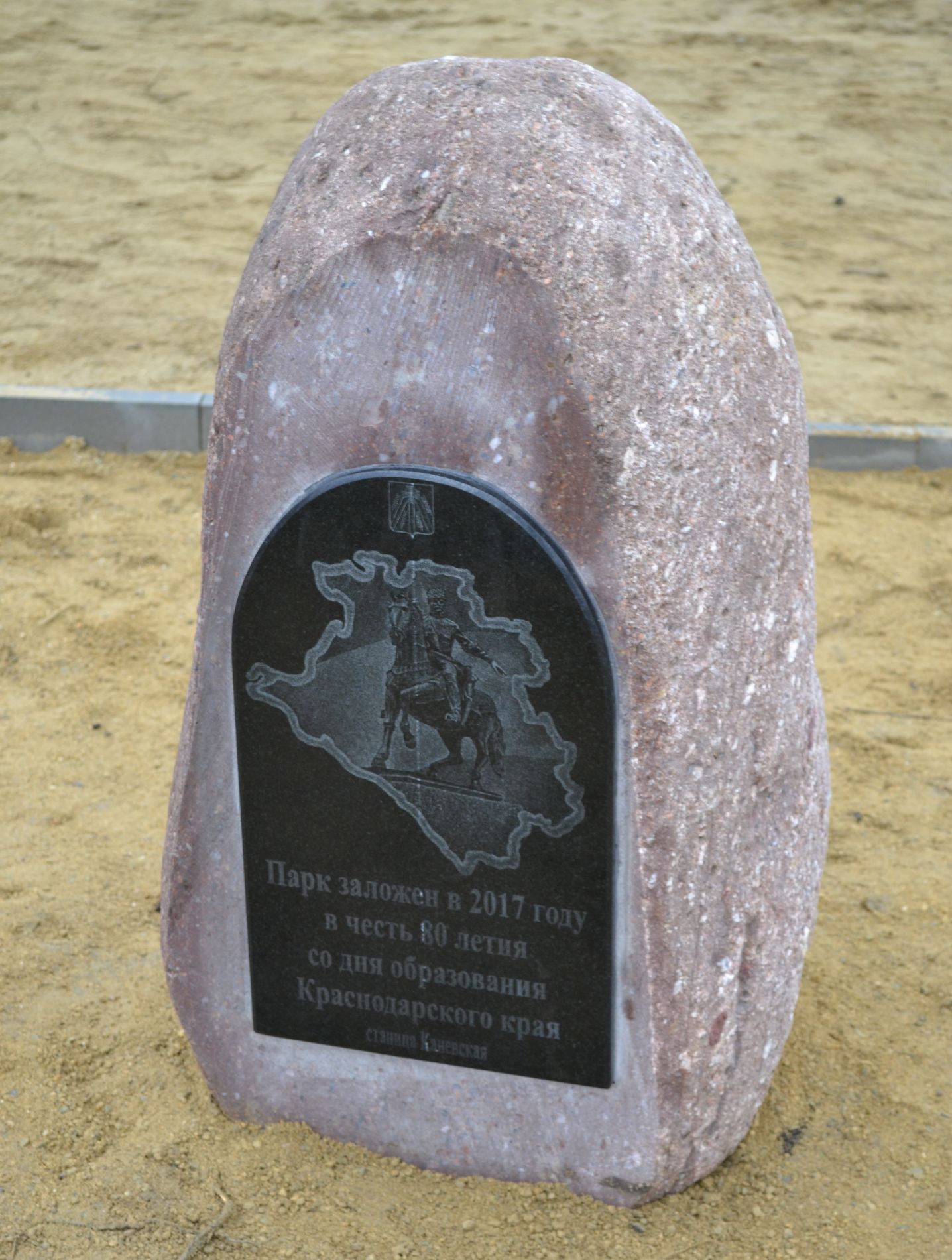 10 ноября высадили первую партию деревьев. В высадке деревьев пожелали поучаствовать представители разных предприятий, учреждений, организаций, общественности, почетные граждане Каневского района, депутаты ЗСК Владимир Лыбанев и Николай Гриценко, глава Каневского сельского поселения Владимир Репин. Они торжественно открыли памятный камень в честь закладки парка. Приветствуя собравшихся, глава района Александр Герасименко подчеркнул, что парк закладывается в честь юбилея, который регион отмечает в этом году. У памятного камня заложили капсулу времени с посланием от молодежи 2017 молодежи 2037 года. Вскроют ее в год 100-летнего юбилея Краснодарского края.