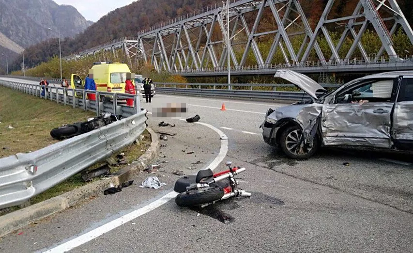 В Сочи на 18-м км трассы Адлер — Красная Поляна утром 16 ноября произошло ДТП с участием мотоцикла и легкового автомобиля