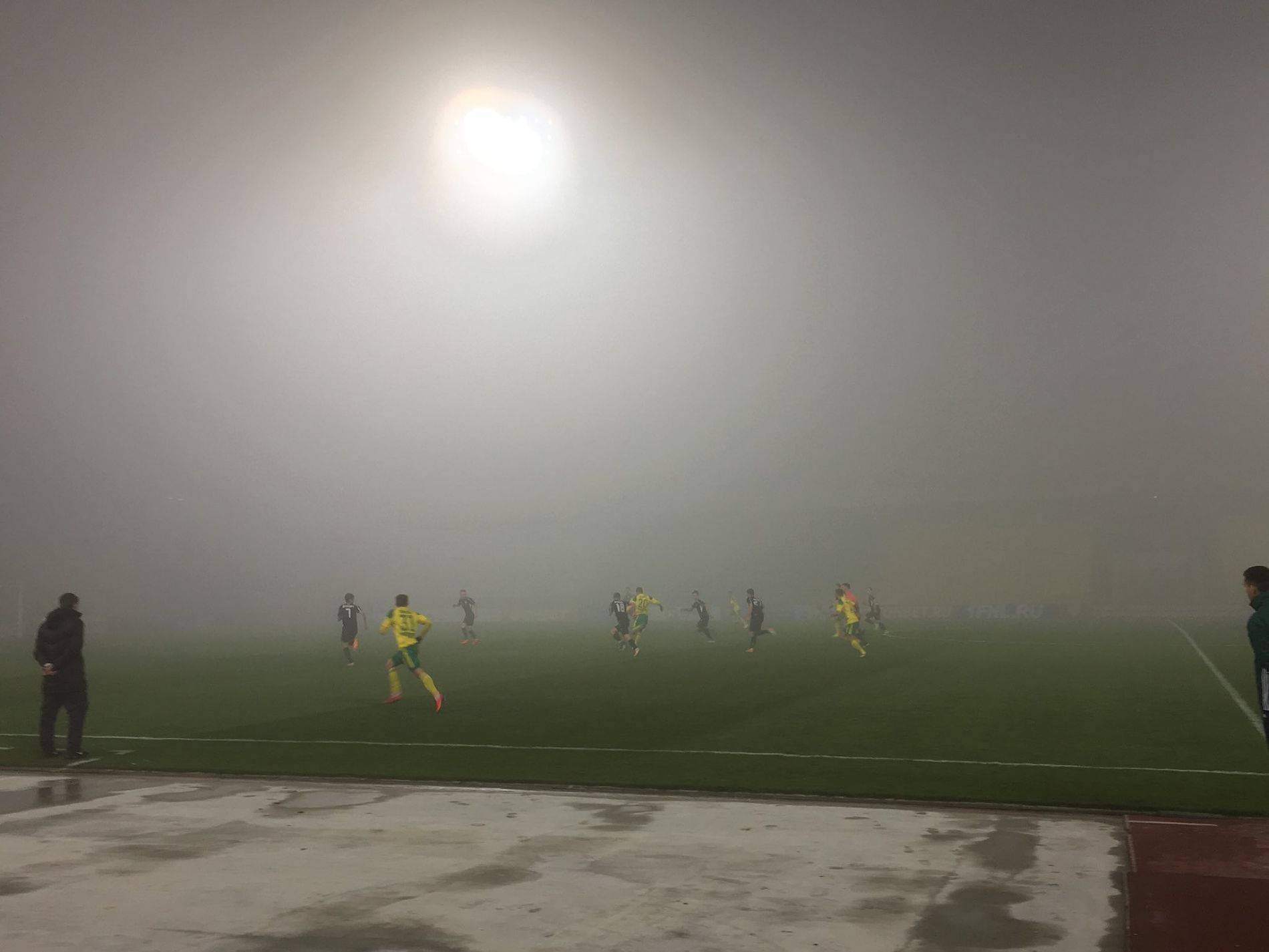 С начала встречи на стадион опустился густой туман, но судья принял решение продолжить матч.