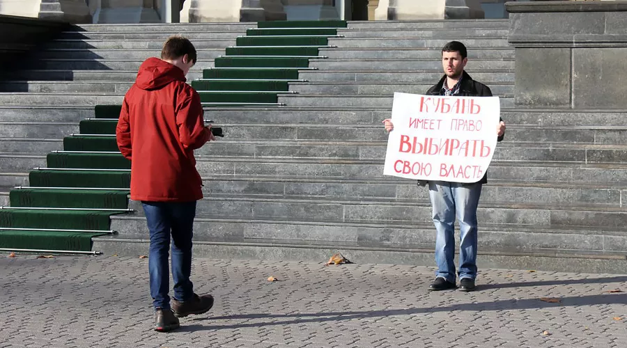 Главу инициативной группы, выступающей за возврат прямых выборов местной власти, координатора общественного движения «Голос» Давида Канкию не пустили на обсуждение. По этой причине он вышел с одиночным пикетом к зданию ЗСК.