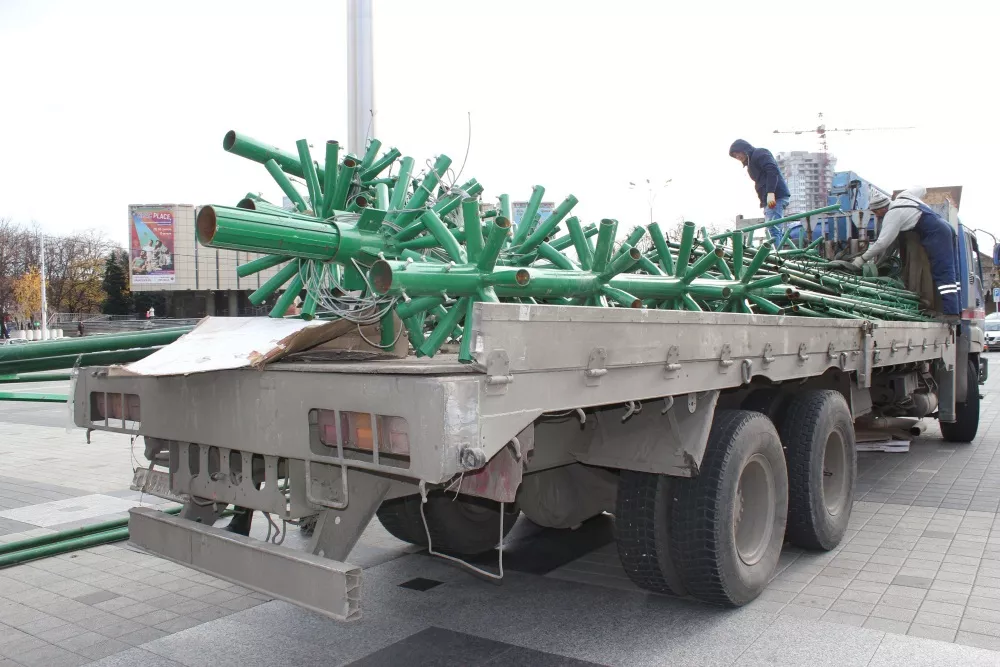 Перед зданием администрации Краснодара 23 ноября выложили детали будущей новогодней елки