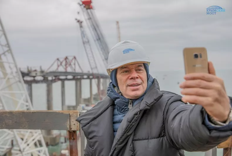 «Строители провели экскурсию для артиста. Он поднялся на железнодорожную арку и с высоты 35 метров — высота арочного пролета над водой — увидел строительство моста со стороны Краснодарского края», — сообщи ли в пресс-центре «Крымский мост».