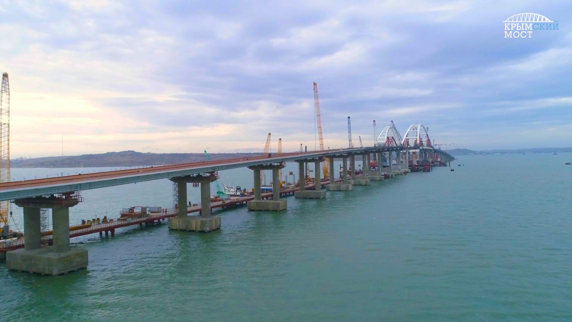 Мост через Керченский пролив станет самым протяженным в России — его длина составит 19 км. Он будет состоять из параллельных автомобильного и ж/д переходов. Железнодорожную арку установили в августе 2017-го, а в октябре на проектную высоту подняли автомобильный пролет.