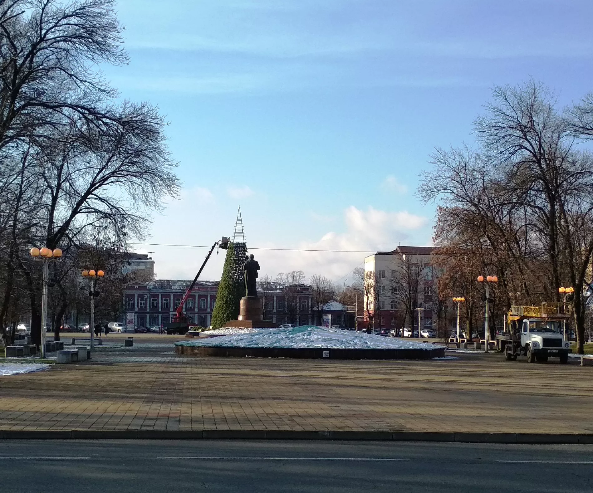 На центральной площади Майкопа устанавливают новогоднюю елку. Торжественное открытие состоится 23 декабря