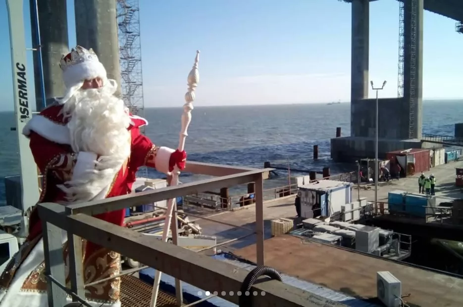 Дед Мороз из Великого Устюга 9 декабря посетил Крымский мост, ознакомился с ходом строительства и встретился с рабочими