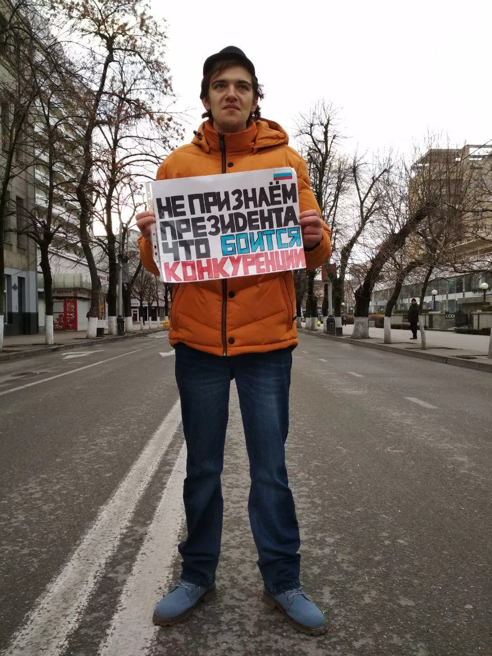 Сторонники Алексея Навального 24 декабря проводят в центре Краснодара одиночные пикеты с требованием в ЦИК зарегистрировать его кандидатом в президенты России
