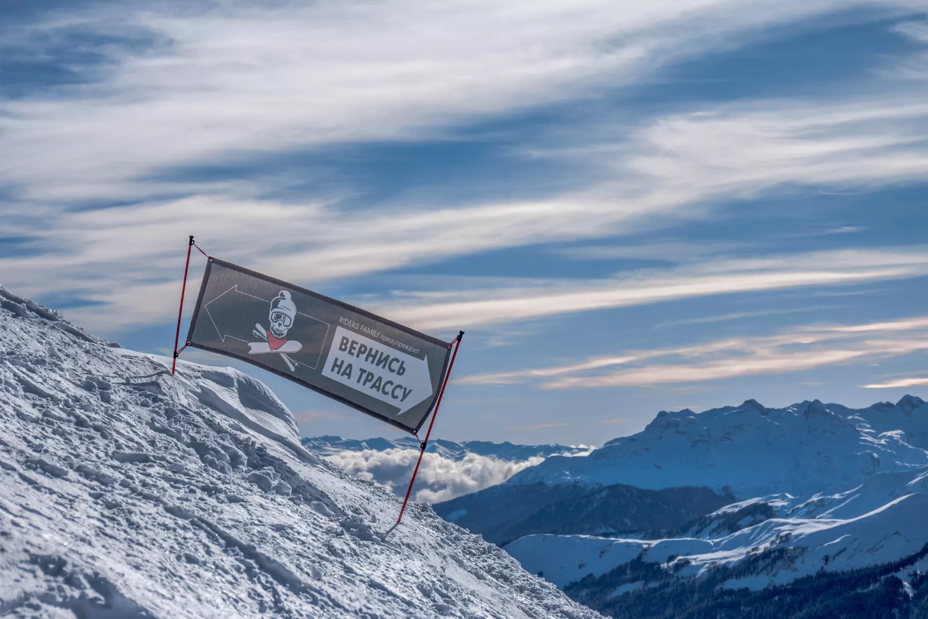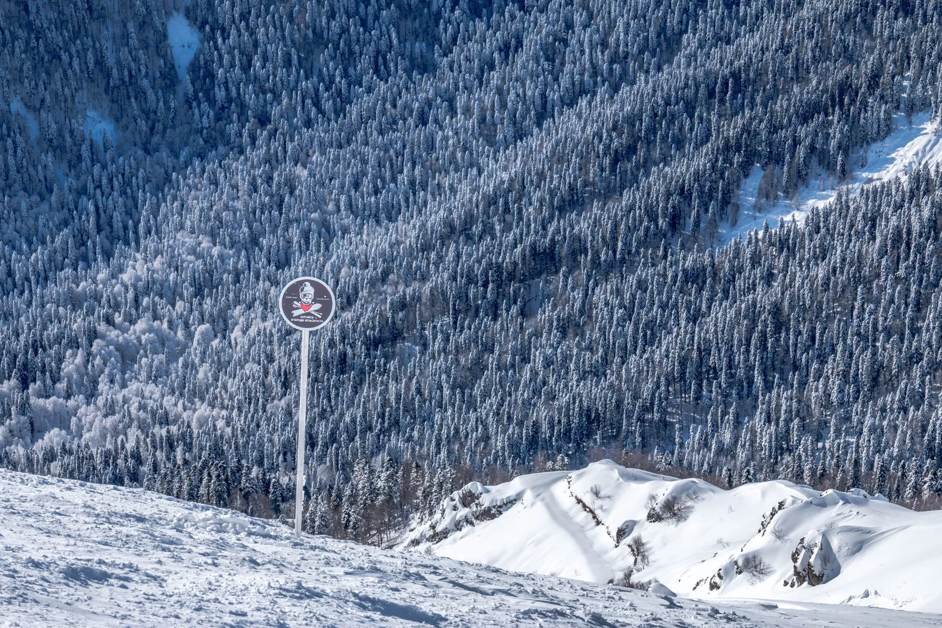 На горнолыжных курортах Красной Поляны установили запрещающие знаки для райдеров с изображением черепа