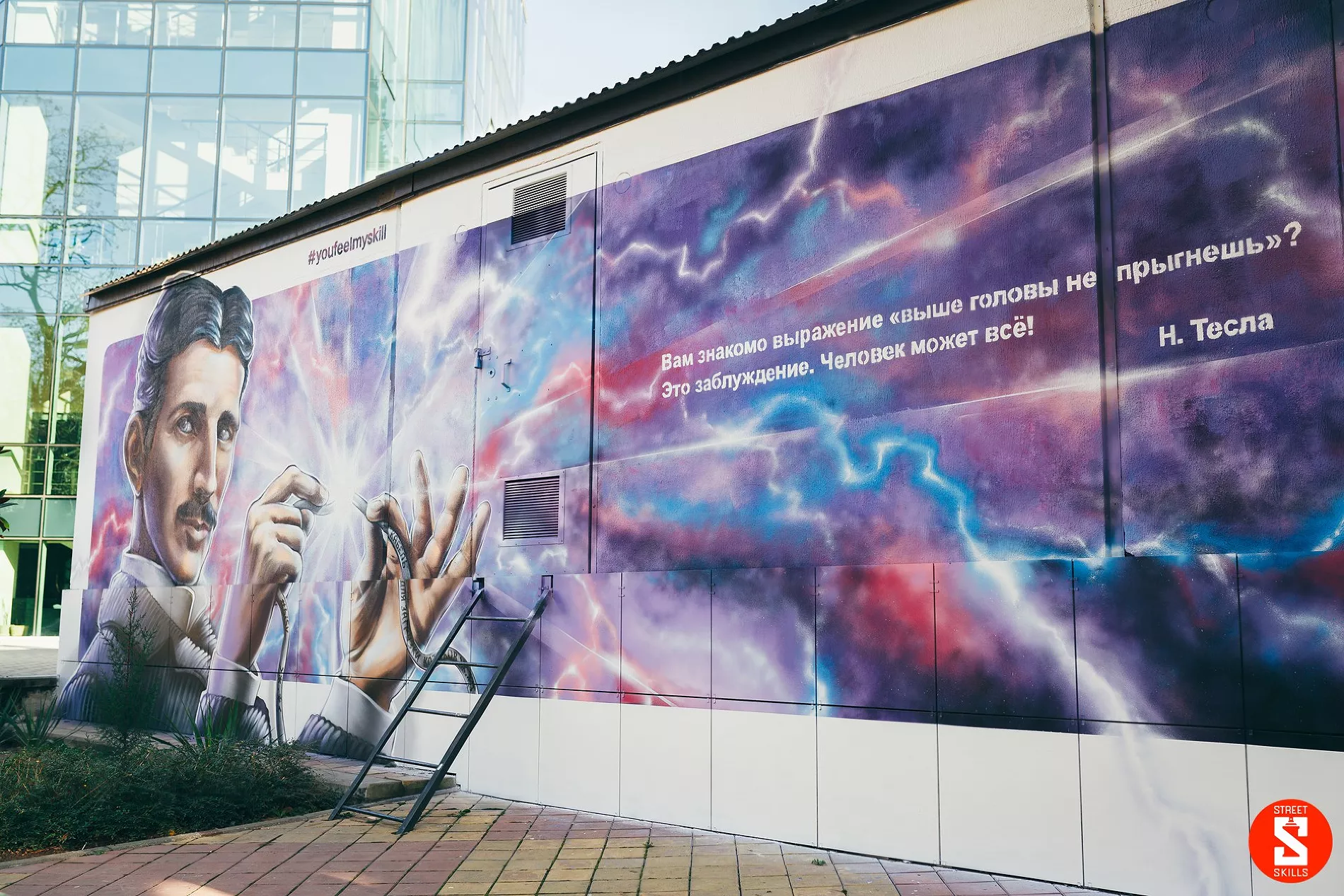 В центре Сочи на улице Островского белорусские граффитисты задекорировали электроподстанцию, изобразив на стене физика Николу Теслу