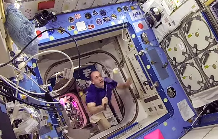 Космонавты из России, а также астронавты из США и Японии провели командный матч по бадминтону на борту Международной космической станции (МКС)