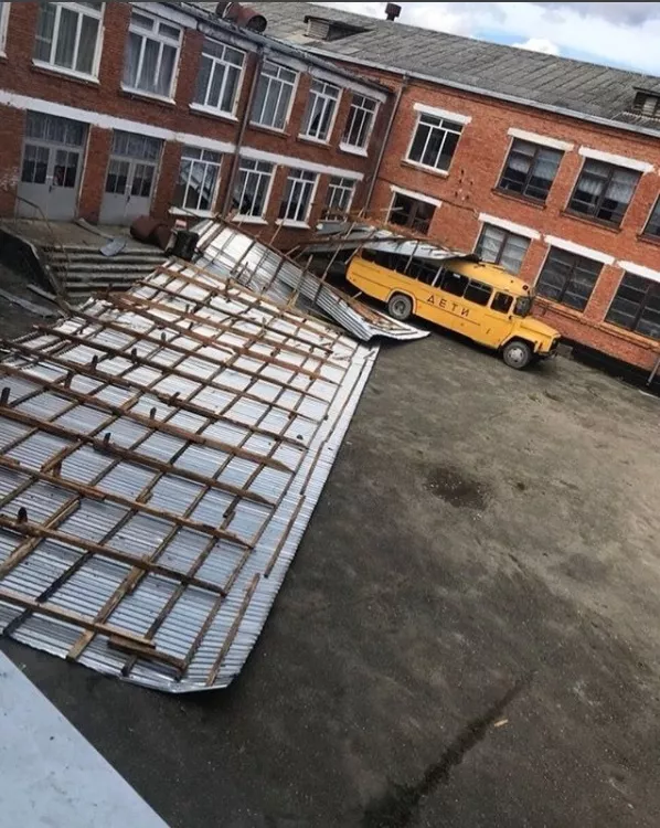 Происшествие случилось около 13 часов, когда в школе проходили уроки. Порывы ветра, по данным МЧС, достигали 18 метров в секунду. Как сообщили в районной администрации, в результате обрушения никто не пострадал. Разрушено около 500 кв. метров кровли.