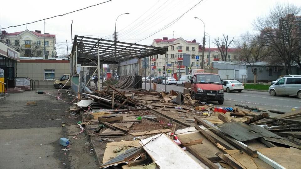 В Краснодаре 29 марта снесли два павильона ярмарки «Янтарь» на улице Шевченко