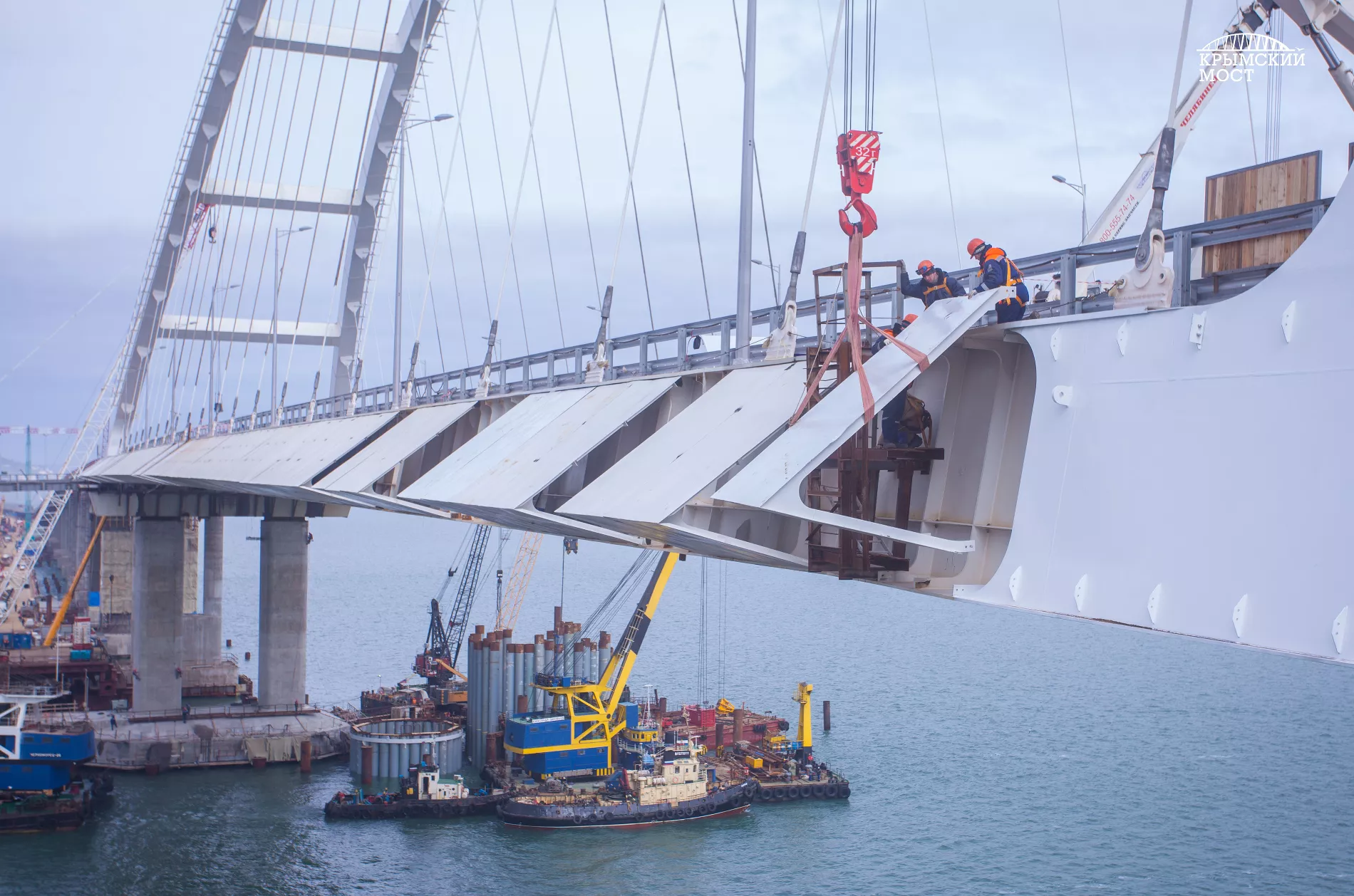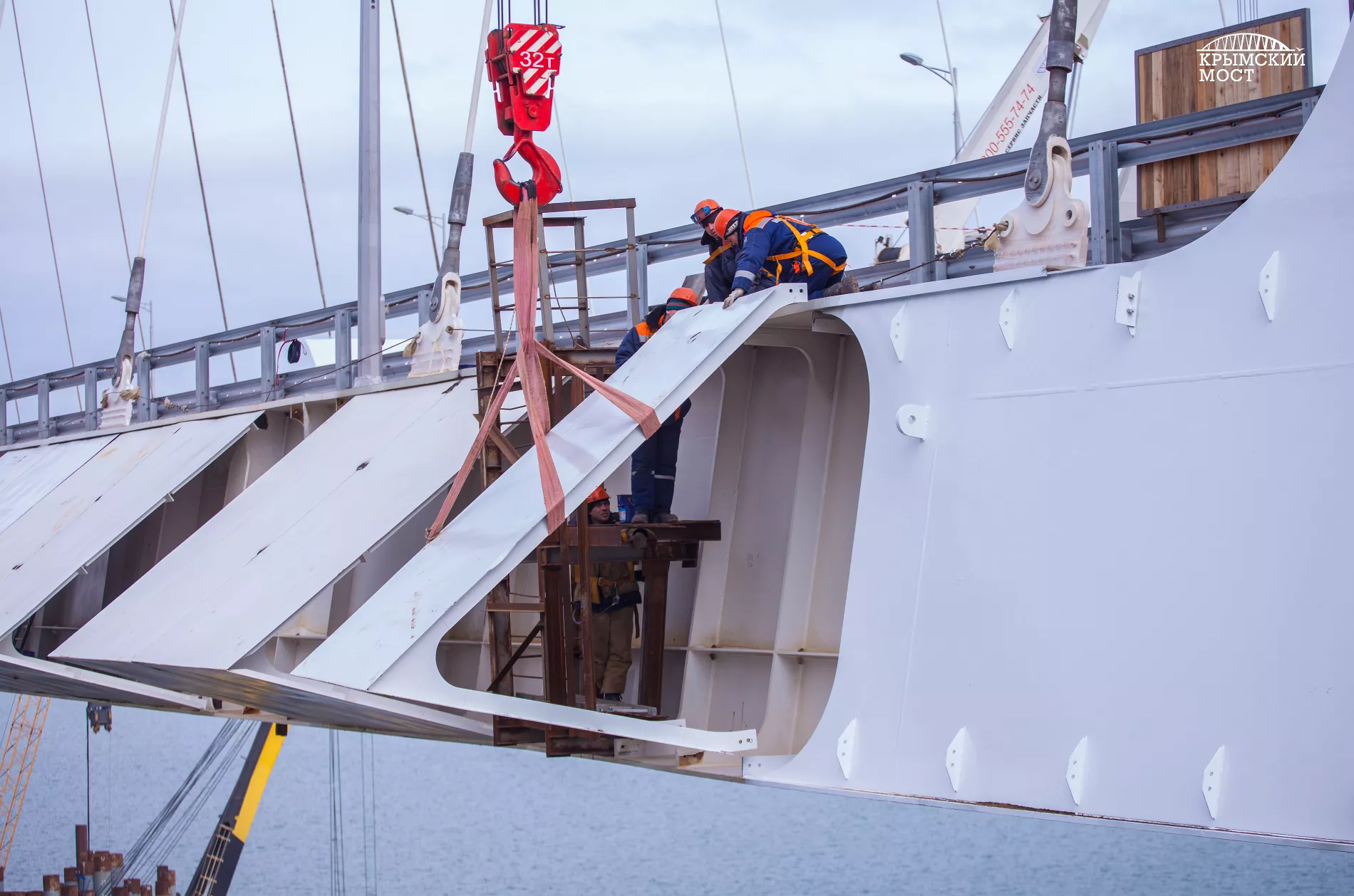 Строители завершили монтаж аэродинамических обтекателей по фасаду автодорожной арки моста через Керченский пролив