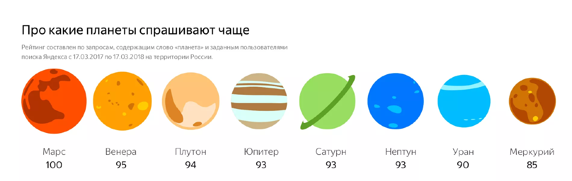 Ко Дню космонавтики «Яндекс» представил подборку популярных запросов про космос, планеты и астронавтов