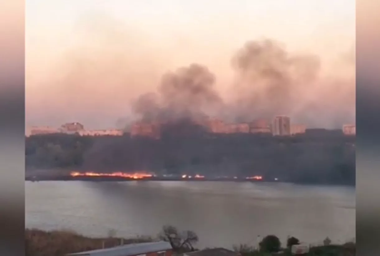 В районе старого русла реки Кубань загорелся мусор и камыш. По предварительным данным, площадь возгорания составляет 1 га.