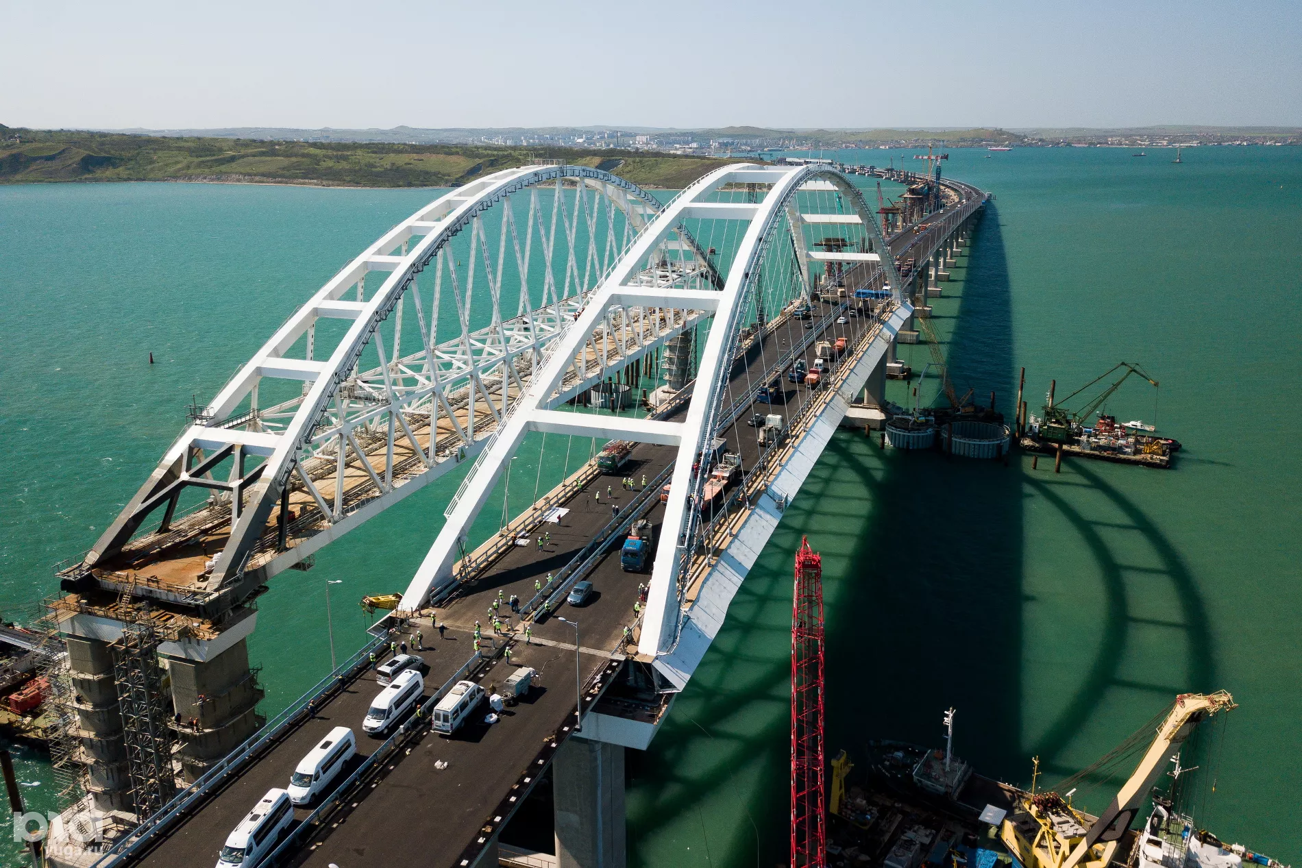 Как сообщали Юга.ру, 6 сентября 2017 года под аркой моста через Керченский пролив впервые прошел корабль Военно-морского флота. Члены экипажа корабля выстроились на палубе, маша фуражками, а строители поднялись на арку. Военный оркестр сыграл гимн «Легендарный Севастополь».