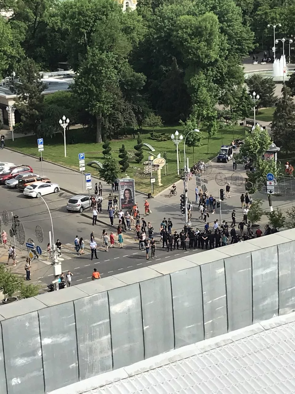 При этом на территории напротив здания администрации проходили спортивные праздничные мероприятия: молодежь играла в волейбол, шашки, пинг-понг, участвовала в других развлекательных мероприятиях. Кроме того, по улице ездили поливочно-моечные машины.