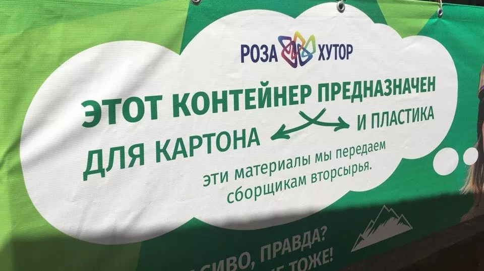 За зимний сезон 2017–2018 года с территории «Роза Хутор» отправили на переработку 1 тыс. куб. метров картона и пластика, собранных с помощью пяти контейнеров-накопителей, расставленных в «Роза Долине» и в Горной Олимпийской деревне.