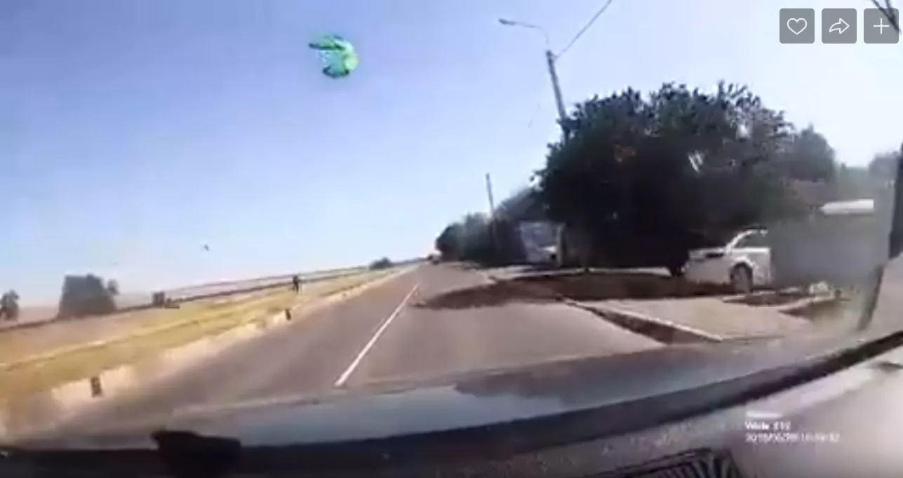 Инцидент, произошедший на ул. Нижнесадовой, запечатлел видеорегистратор проезжавшей машины. На кадрах видно, как парашютиста ударило о дорожное ограждение, потом, по сообщениям очевидцев, он перелетел дорогу и врезался в витрину.