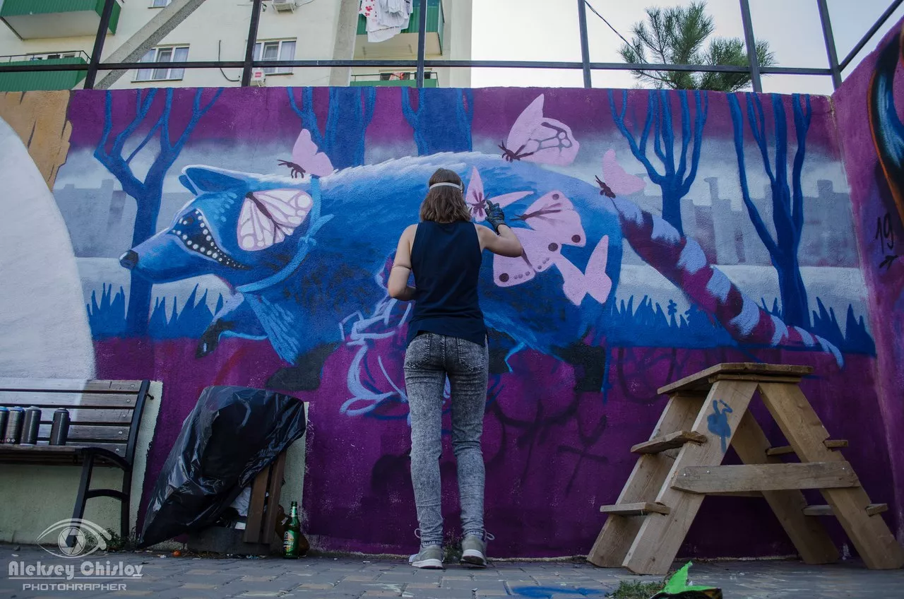 С 10:00 до 19:00 25 художников из Краснодара, Волгограда, Ставрополя, Новороссийска и Ейска создадут на стене длиной около 200 метров панорамный рисунок. Райтеры уже подготовили эскизы, в основном это граффити-шрифты.
