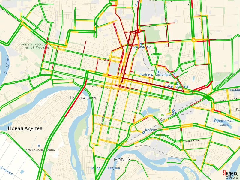 «Яндекс.Пробки» отметили неожиданно плотное движение на улице Красной.