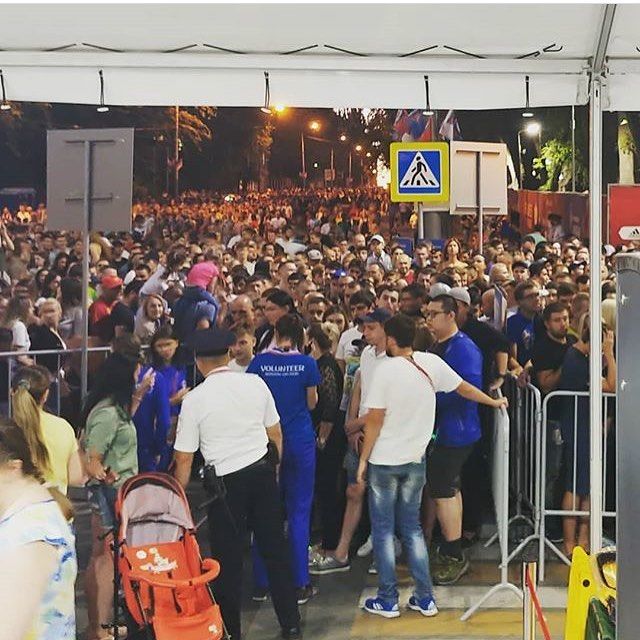 На входе скопилась километровая очередь. Волонтеры сообщили корреспонденту портала Юга.ру, что пройти в фан-зону нельзя, и предложили «отдыхать в других частях города».