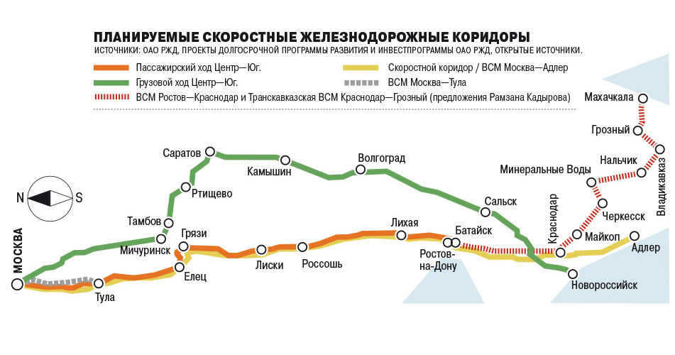 Он предложил построить участок Ростов-на-Дону — Краснодар и отдельно к нему уже Краснодар — Грозный через Майкоп, Черкесск, Минводы, Нальчик и Владикавказ. По предварительным расчетам, реализация проекта может обойтись государству в 1,2 трлн рублей.
